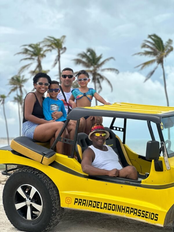 Passeio com duração média de 2 horas, dividido entre Pau de Arara, Catamarã e Buggy, proporcionando três experiências diferentes.